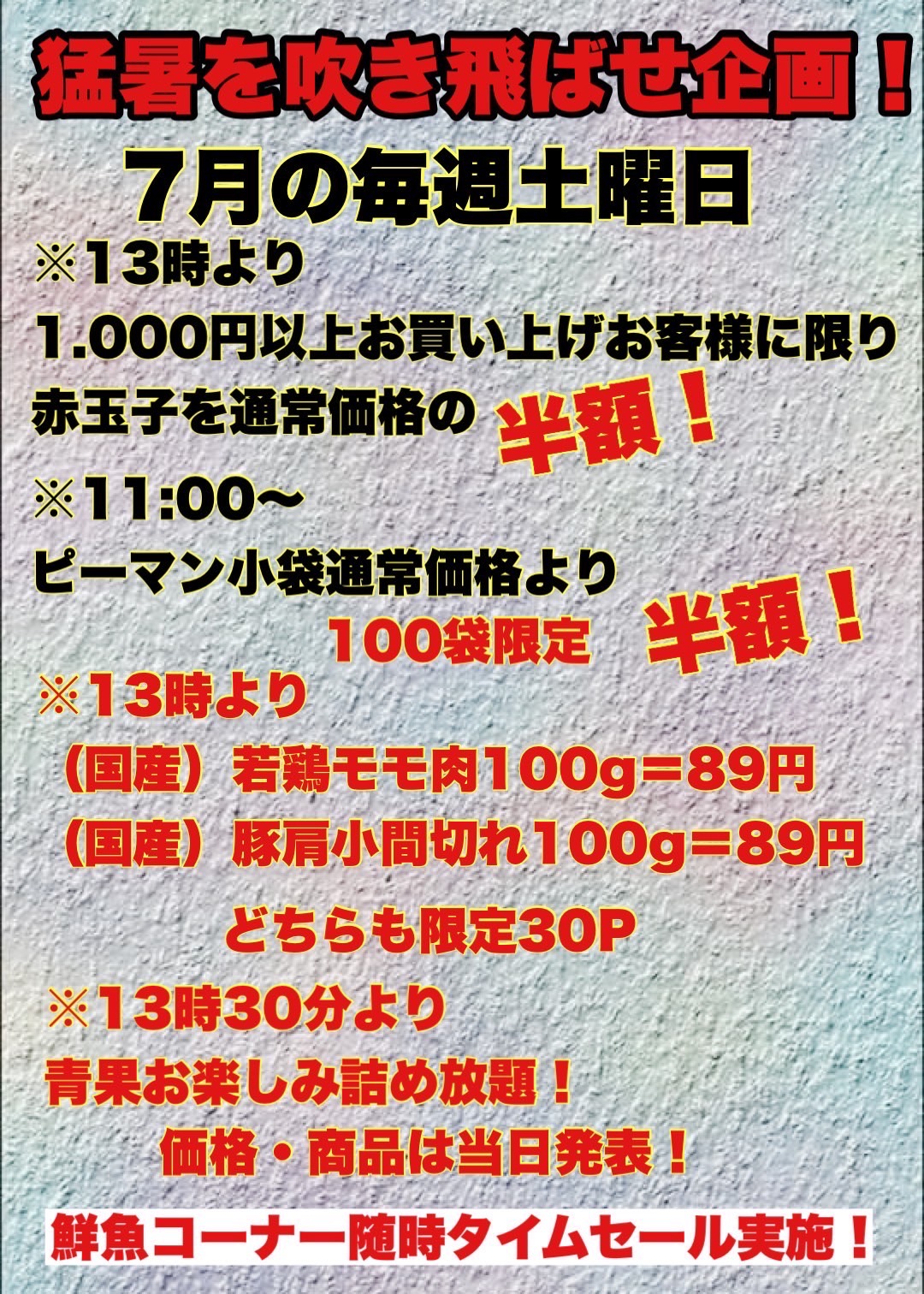 🕒 土曜日限定のタイムサービス も開催!