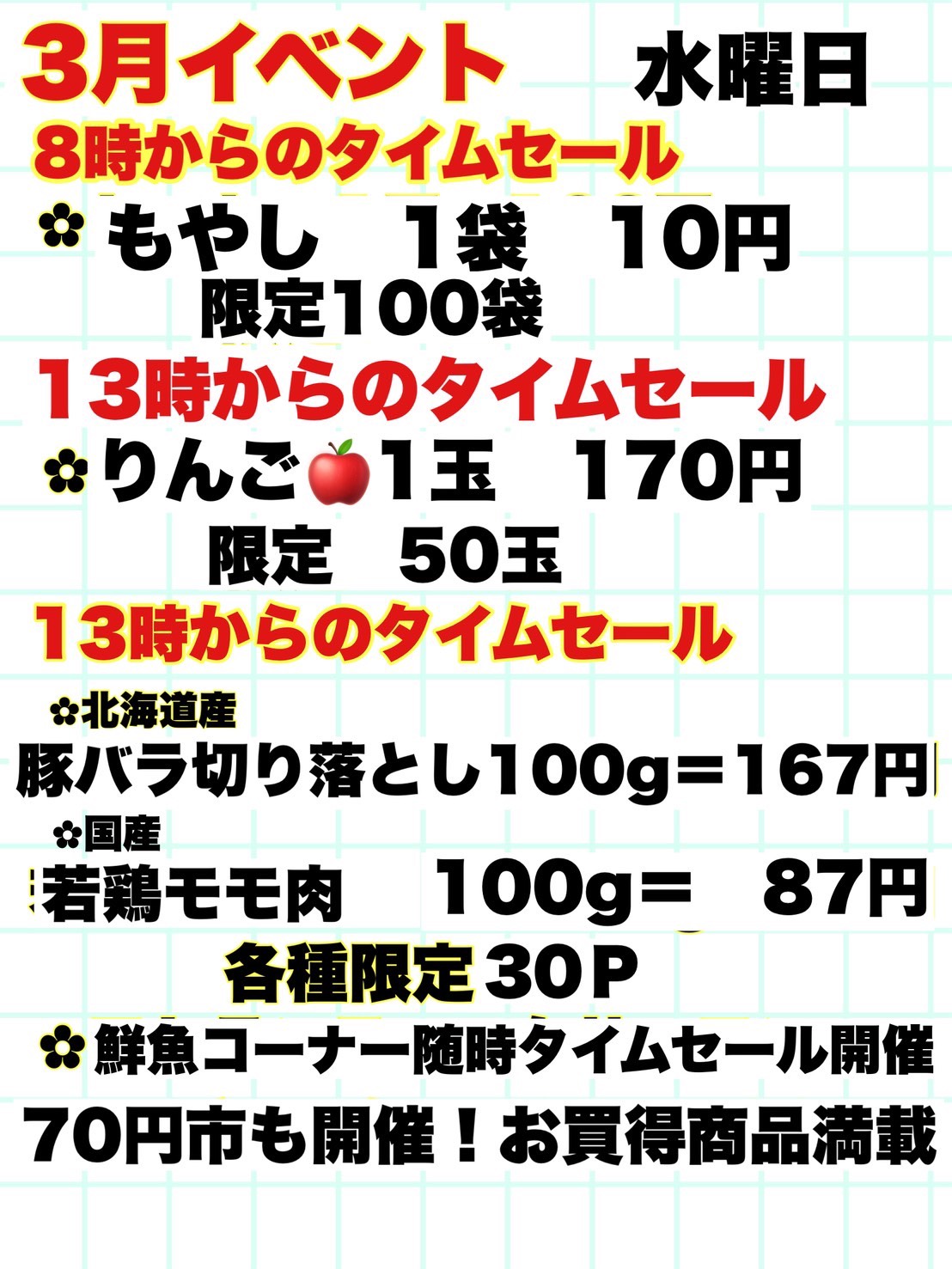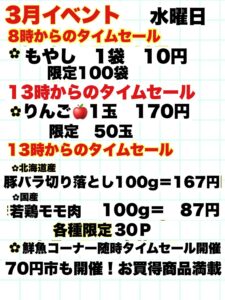 本日3月18日(水)恒例「アロス スーパー70円市!」 を開催いたします!