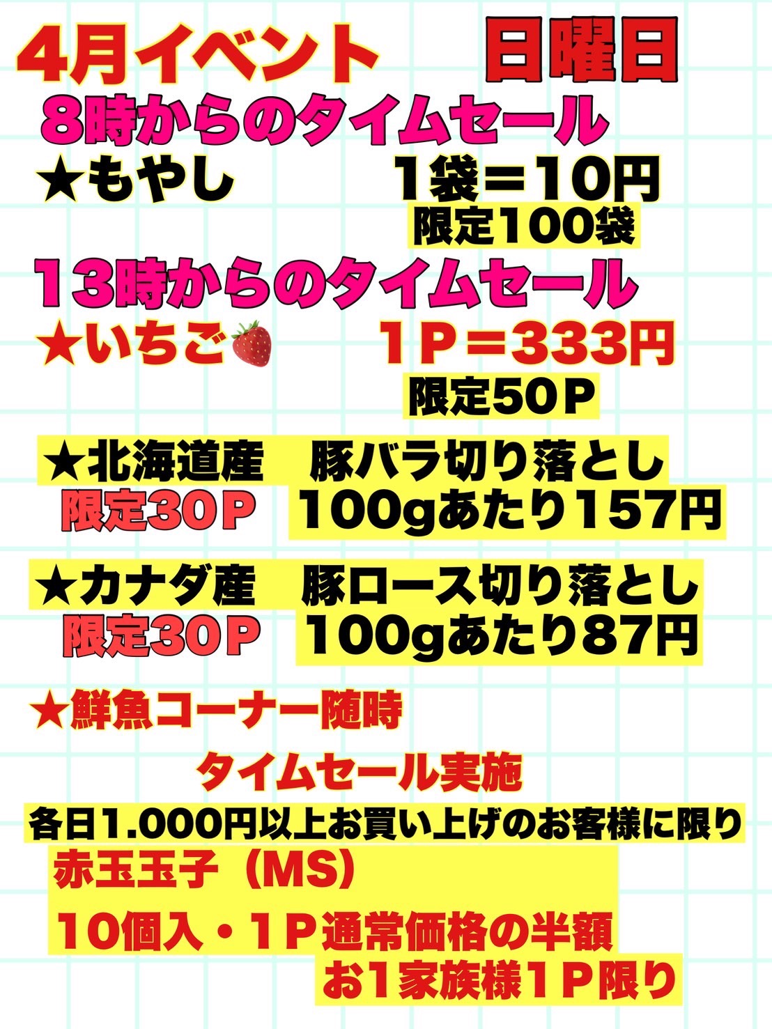 4月5日 日曜恒例「アロス日曜朝市/日曜特売」の開催日です!